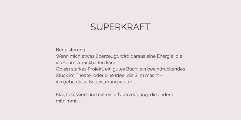 Im späteren Berufsleben arbeitete ich in redaktionellen und konzeptionellen Funktionen intensiv mit Sprache. Mit der Zeit wurde deutlich, dass viele Projekte genau das verlangten, was die Strukturen nicht vorsahen: eine Arbeitsweise, die Inhalt und Gestaltung zusammenführt. Irgendwann wurde mir klar, dass aber genau dort – an dieser Schnittstelle – meine eigentliche Stärke liegt.